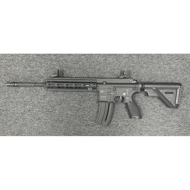 HK partnered with Umarex of Germany to bring you the HK416 .22 LR rifle. Featuring a RIS- Rail Interface System M-LOK/Mil Picatinny Rail 1913; retractable stock; pistol grip with storage; adjustable flip up sights; 90 degree manual safety; functional dust cover; last round bolt hold open and a threaded muzzle 1/2" x 28.