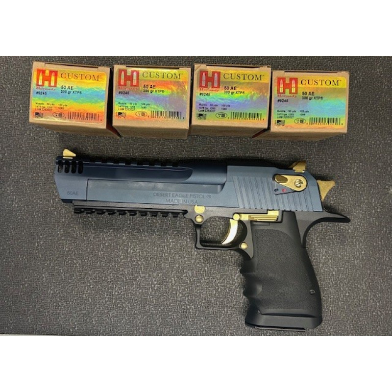 Magnum Research Desert Eagle lighter weight models make a noticeable difference when handling the pistol. Through the use of an alloy frame and weight reducing cuts, the Desert Eagle LW are just under one pound lighter than the steel framed models. The single action pistol has a crisp 4-pound trigger pull. The Mark XIX L6 are offered with a hard-coat anodized black aluminum frame; steel slide; Hogue finger groove rubber grips, top picatinny rail and frame accessory rails. The lightweight Desert Eagles take the same magazines as the current steel models.
