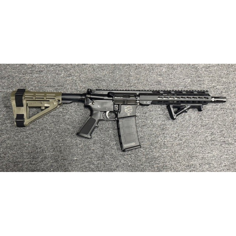 Don’t settle for less! Anderson lower receivers are completely CNC machined in-house using 7075 T6 aluminum. Manufacturing allows Anderson to monitor their parts from start to finish to ensure high-quality products for their customers. Making parts on-site, in Hebron, KY, also allows them to keep the prices affordable. Machined to Military Specifications standards and marked “MULTI-CAL” to be used with multiple calibers on the AR-15 platform. This Lower Receiver comes in type III black hard anodizing with an open trigger. Anderson Mfg 10.5 in Barrel with 10 in. Keymod Handguard, SB Tactical SBM4 Brace OD Green. Magpul AFG