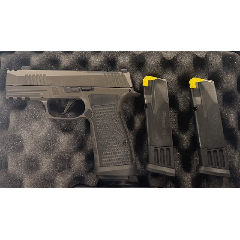 The P365-AXG LEGION embraces what its owners stand for and expect, quality, innovation and performance. The P365 AXG LEGION featuring an alloy Macro grip frame with G10 Chevron grip panels; optics cut integral compensated slide design; extended magwell; XRAY Night Sights and Legion Cerakote Gray finish. Includes three magazines.