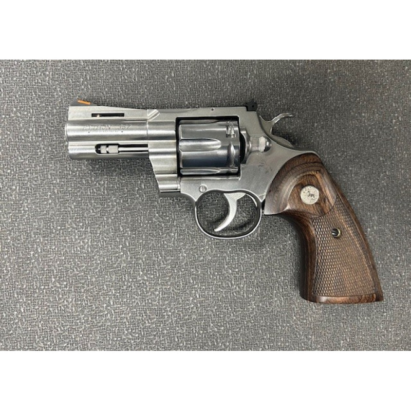 The Python features modern stainless steel alloys and a re-designed rear sight. Thirty percent more steel beneath the rear adjustable target sight gives you a stronger revolver and more robust shooting experience. A recessed target crown, user-interchangeable front sight and Walnut grip with the iconic Colt medallion. The Python is chambered in .357 Magnum and also accommodates 38 Special cartridges.