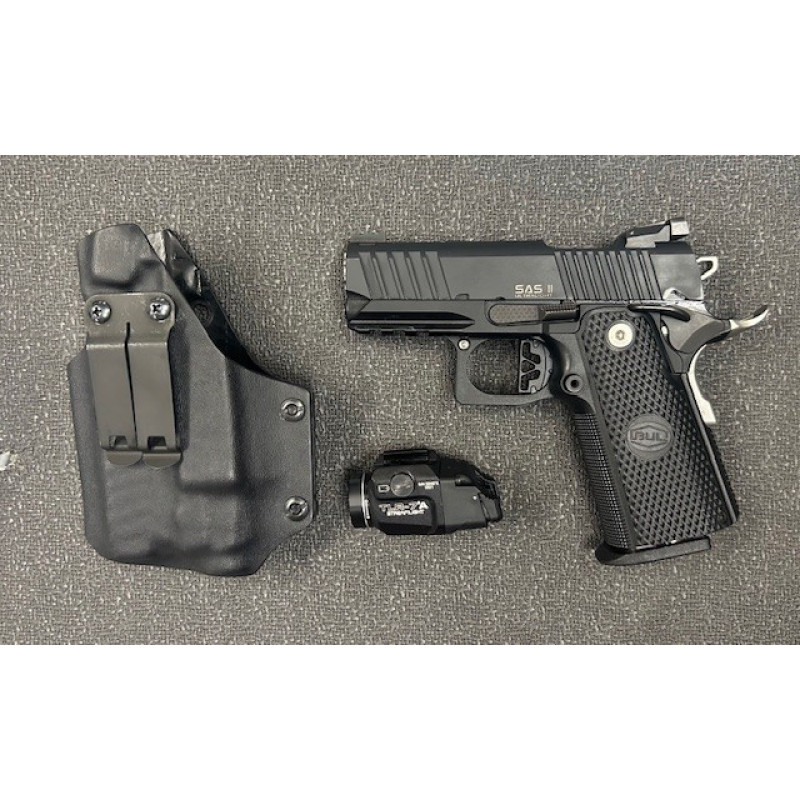 Used Bul Armory SAS II Ultralight, 3.25" Barrel, 9mm, Fiber Optic Front Sight, 2 Magazines, Left Handed IWB Holster, Streamlight TLR-7A