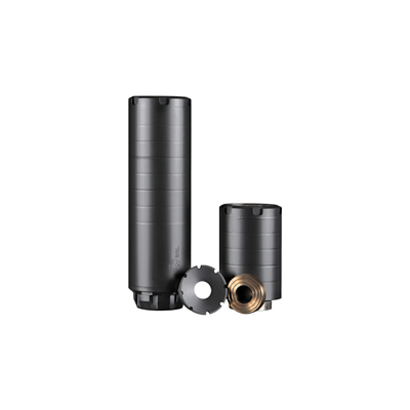 The Wolfman is the next generation of suppression. Like its predecessor, its a modular, multi-caliber suppressor. It specializes in subgun, light-duty rifle, and pistol use. It provides ultimate suppression in its full-length configuration while still providing exceptional performance when set up in the short configuration. The Wolfman also has an Ace up its sleeve, the front cap can contain a user-provided rubber wipe that can drop suppression levels even further.Construction is fully welded 17-4 PH stainless steel that brings ultimate strength while keeping the suppressor as light as possible. Its the ultimate mix of toughness and lightweight.